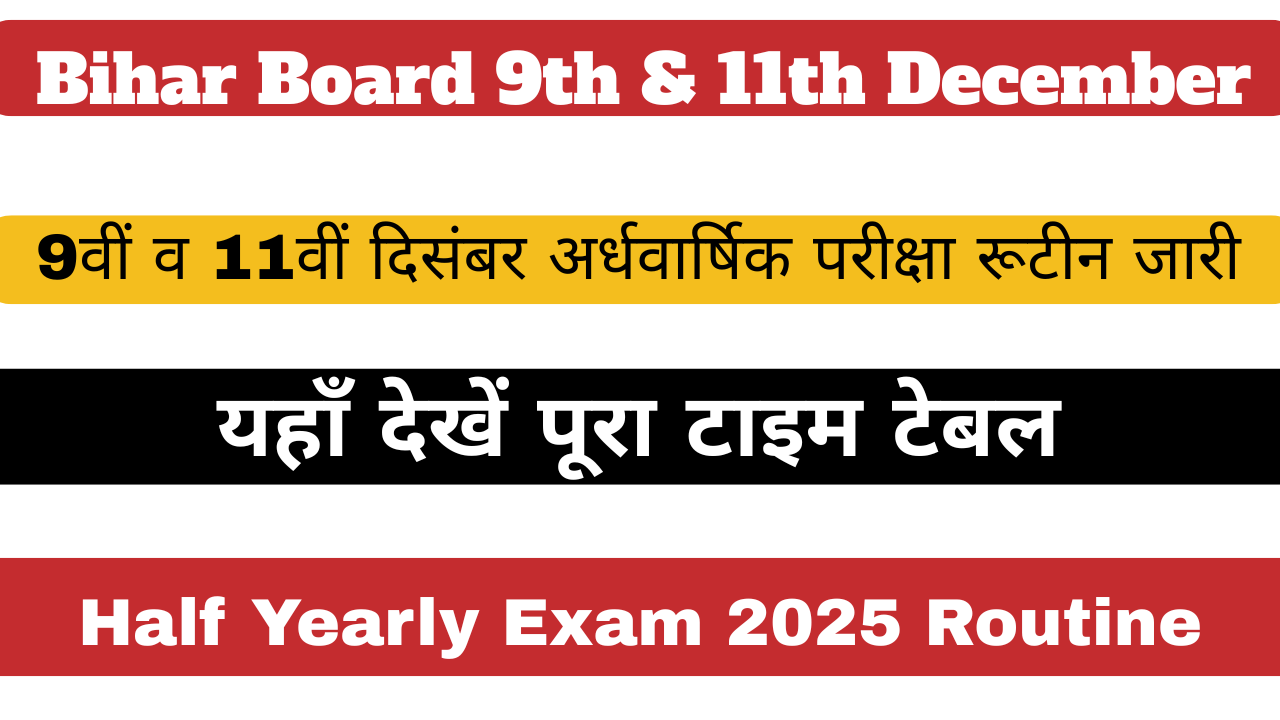 Bihar Board 9th & 11th December Half Yearly Exam 2025 Routine: कक्षा 9वीं व 11वीं दिसंबर अर्धवार्षिक परीक्षा रूटीन जारी | यहाँ देखें पूरा टाइम टेबल